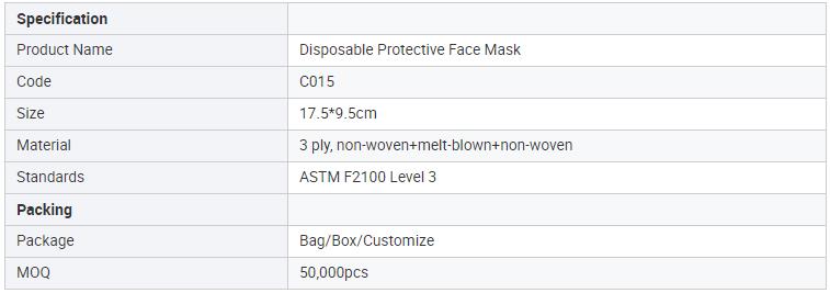 | Name: | 510K 3ply high quality 50pcs box customize factory level 3 surgical mask C015 |