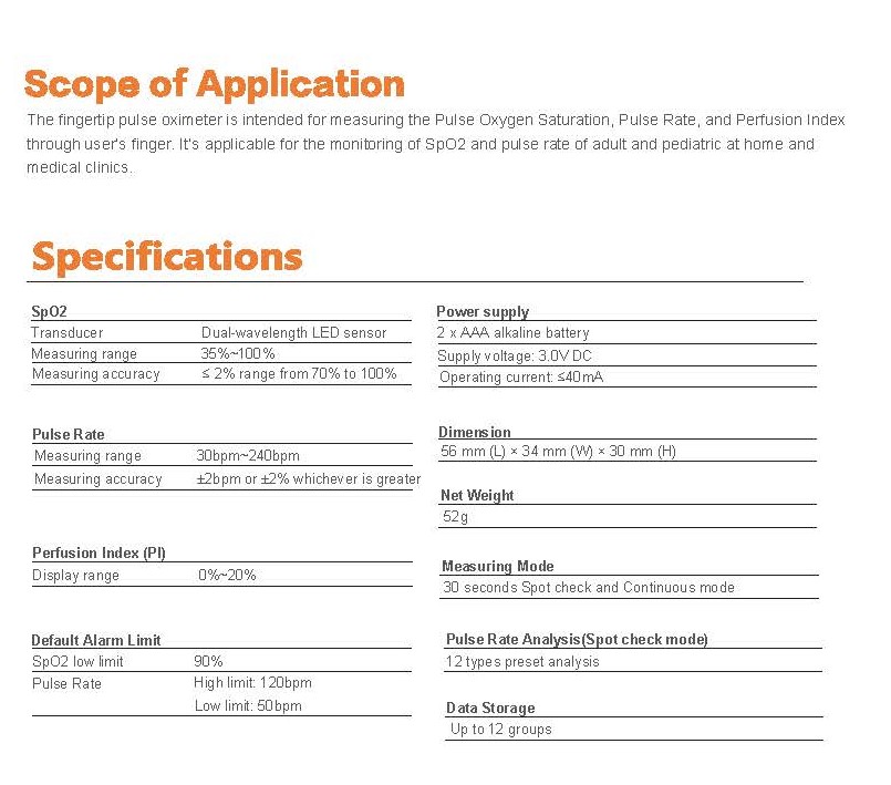 | SpO2 Measuring range: | 35~100 |